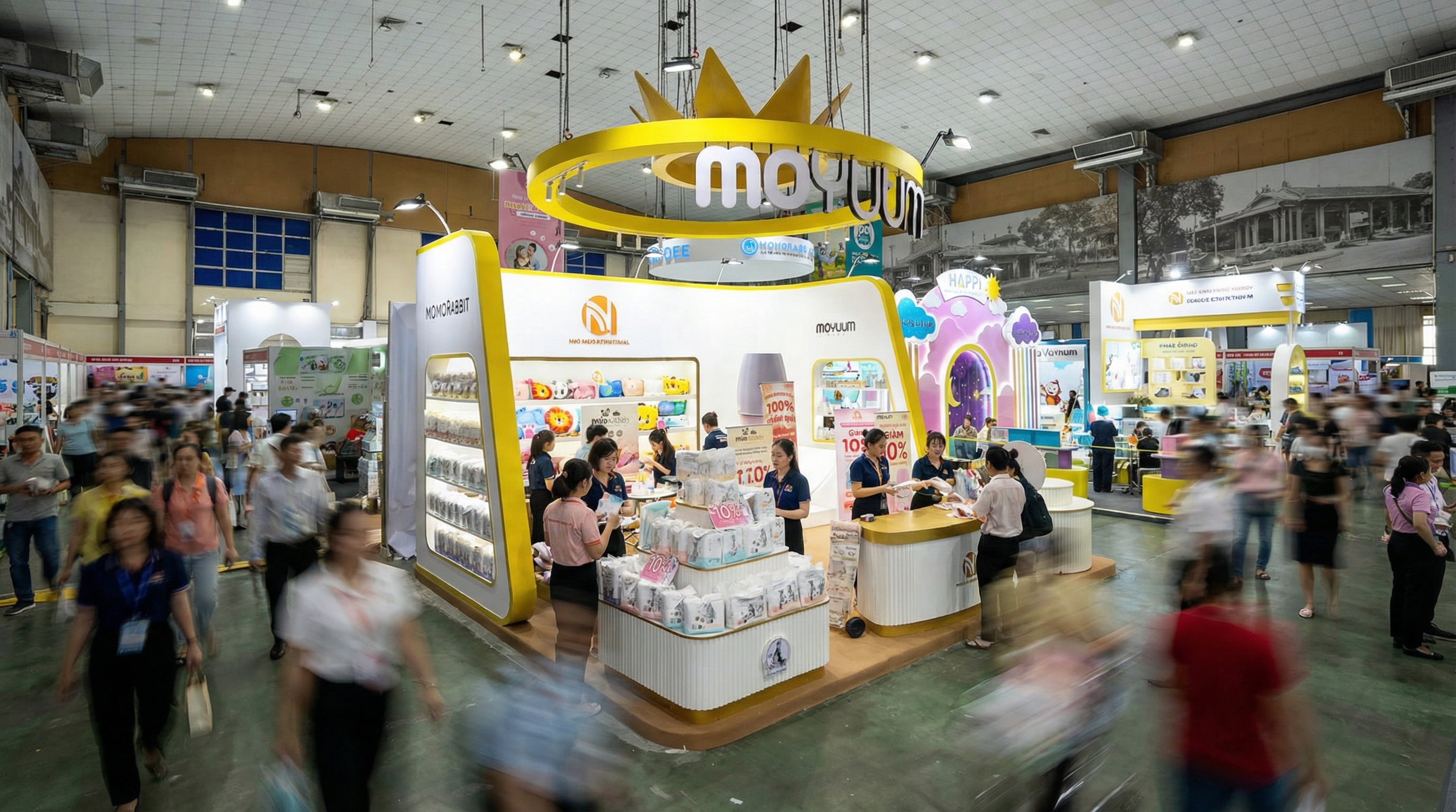 Bên cạnh đó, đội ngũ thiết kế của Boothpro thường xuyên cập nhật xu hướng gian hàng mới, để mỗi gian hàng không chỉ đúng nhu cầu sử dụng mà còn tạo được dấu ấn thị giác, hỗ trợ tốt cho hoạt động trưng bày và tương tác tại sự kiện.