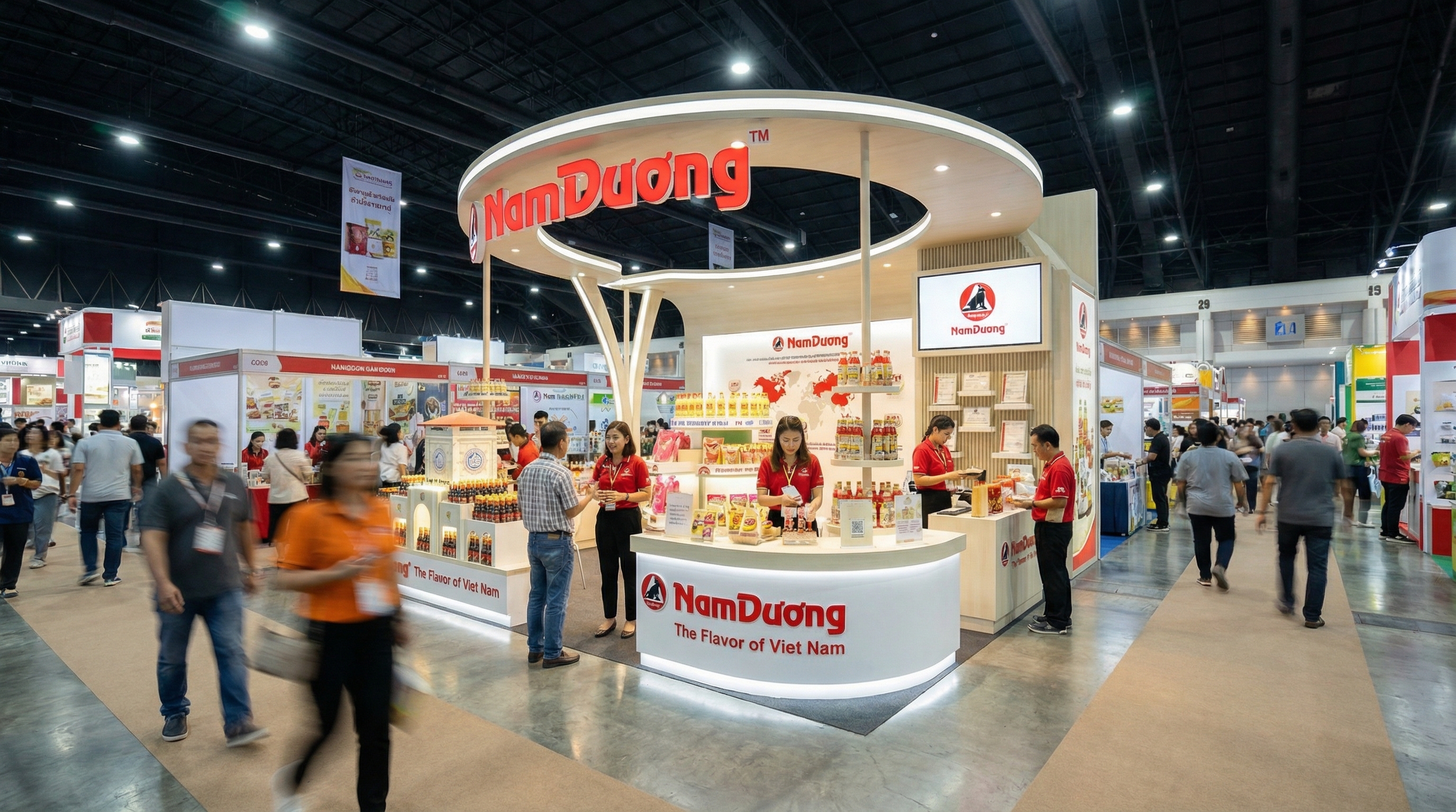 Gian hàng hiệu quả thường dẫn dắt khách theo nhịp rất tự nhiên: